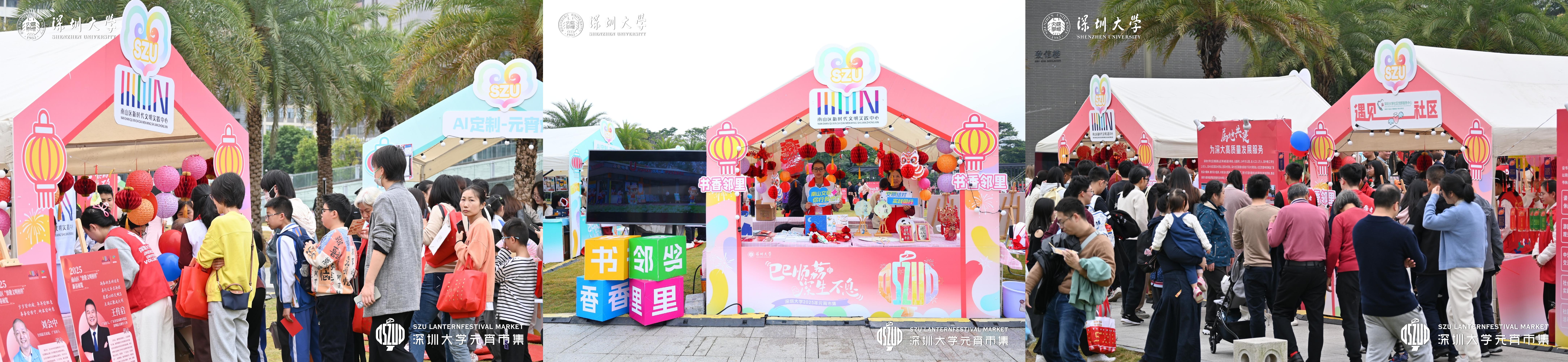 本屆元宵市集延續(xù)校地聯(lián)動的特色,在首屆成功經(jīng)驗的基礎(chǔ)上,進一步深化與南山區(qū)的合作。南山區(qū)委組織部、南山區(qū)委宣傳部、南山區(qū)校地統(tǒng)戰(zhàn)工作聯(lián)盟、南山團區(qū)委、粵海街道、深大社區(qū)等屬地單位深度參與,通過黨建項目共建、資源共享,推動校城文化融合與基層治理創(chuàng)新。