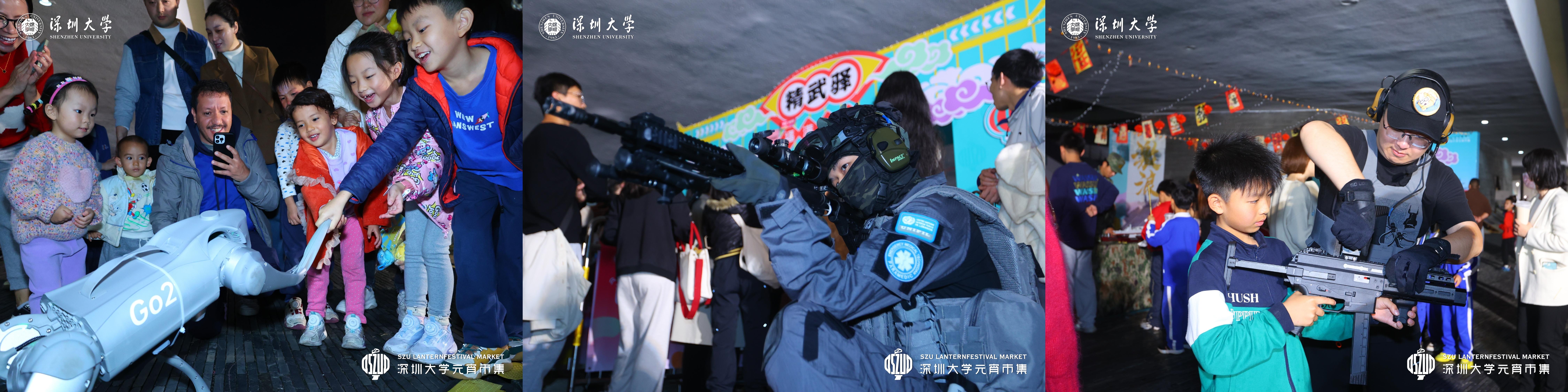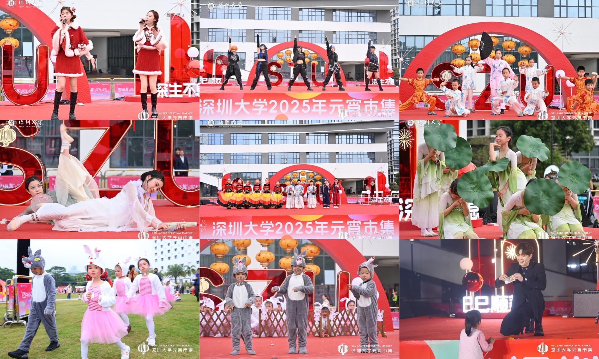 下午三點開始,致信樓畔的露天舞臺奏起歡樂樂曲,在讀學(xué)子、深大校友、少年兒童輪番登場,閃耀舞臺。深圳大學(xué)附屬南山幼兒園中班精心準備的創(chuàng)意歌劇《小兔子乖乖》可愛滿滿,深大吉他社派出樂隊演奏搖滾樂《河流》氣氛熱烈,南山區(qū)文理實驗學(xué)校(集團)文理一小獻上武術(shù)表演《壯志凌云》一招一式彰顯功力……現(xiàn)場人頭攢動,圍觀人群齊聲喝彩。致理樓STUDIO演播廳也成為頗受中小學(xué)生喜愛的區(qū)域,不少學(xué)生拉著爸爸媽媽的手走進大學(xué)STUDIO觀看電影《志愿軍:存亡之戰(zhàn)》《抓娃娃》和《長安三萬里》。深圳大學(xué)黨委副書記吳報水表示,在本屆元宵市集上,無論是邀請中小學(xué)生共同參與攤位展示和演出,還是學(xué)校推出的元宵節(jié)版“影視思政”,都是豐富“大中小學(xué)思政一體化”的形式,希望在歡樂的節(jié)日里,開放大學(xué)校園,推動教育資源跨學(xué)段貫通共享。
