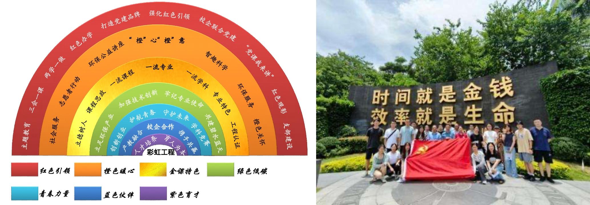 支部圍繞國家生態文明建設戰略的重大需求,緊密結合綠美廣東生態建設,構建了“紅色引領、橙色暖心、金課特色、綠色低碳、青春力量、藍色伙伴、紫色育才”的“彩虹工程”黨建工作體系,充分發揮紅色引擎作用,支部黨員教師全部主持國家級項目,推動專業入選廣東省一流專業建設點,被評為教育部“五星級”專業。