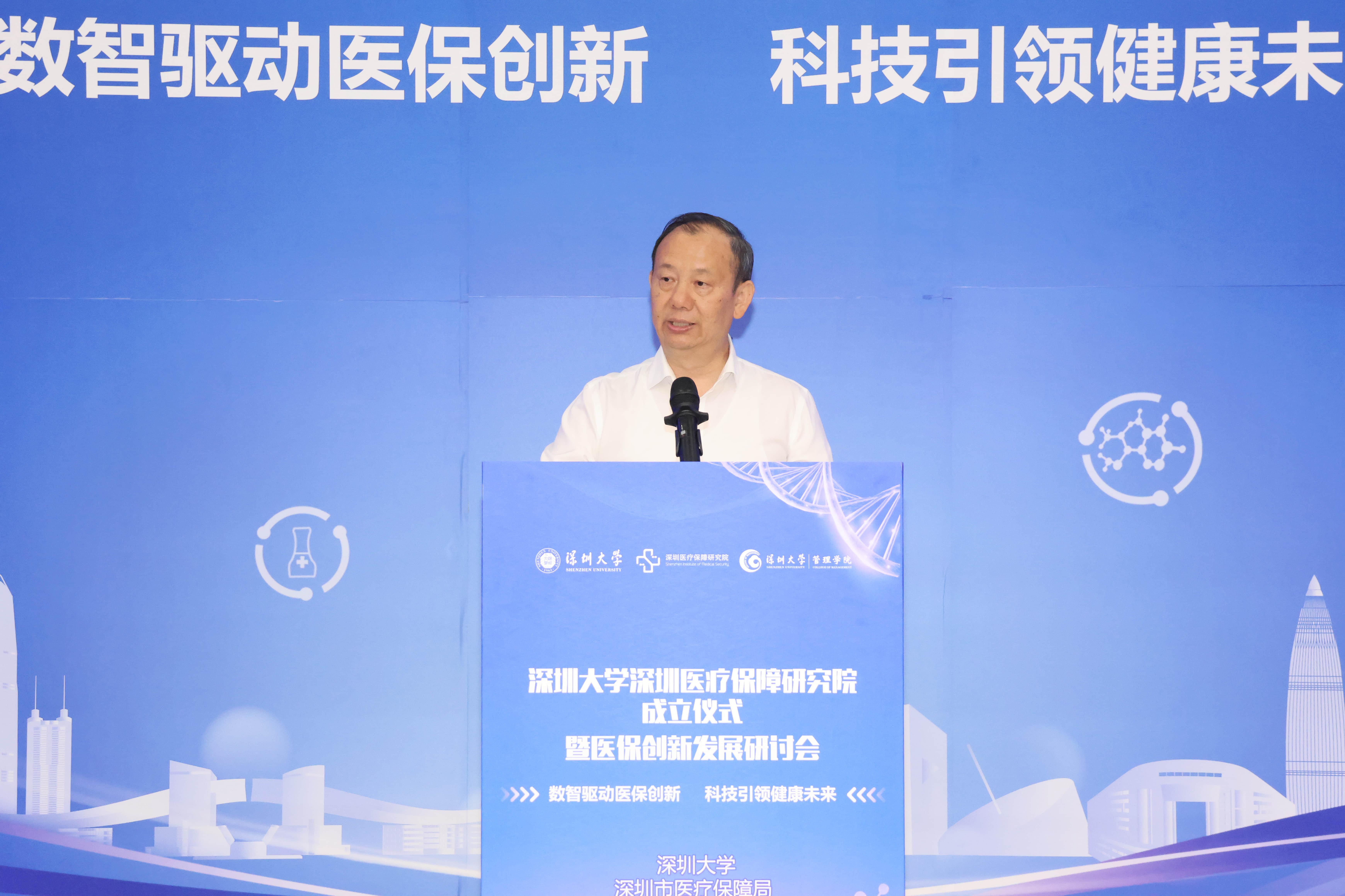 毛軍發(fā)在致辭中表示,深圳作為改革開放的前沿陣地,始終堅(jiān)持人民為中心的發(fā)展理念,在醫(yī)保創(chuàng)新領(lǐng)域走在全國前列。深大作為扎根特區(qū)的高水平綜合性大學(xué),與深圳市醫(yī)療保障局共建醫(yī)療保障研究院,既是符合國家戰(zhàn)略的重要舉措,也是響應(yīng)“四個面向”中“面向人民生命健康”的重要抓手,更是深化教育合作、推動產(chǎn)學(xué)研聯(lián)動的生動實(shí)踐。他表示,研究院的成立標(biāo)志著深圳大學(xué)的醫(yī)保研究邁上一個新臺階。深大將依托學(xué)科優(yōu)勢,聚焦醫(yī)保制度改革、藥品器材器械監(jiān)管等關(guān)鍵領(lǐng)域,打造國內(nèi)領(lǐng)先的研究院。他希望研究院在未來發(fā)展中堅(jiān)持問題導(dǎo)向,圍繞國家醫(yī)療改革需求開展戰(zhàn)略性研究,為政府決策提供支持;加強(qiáng)協(xié)同與創(chuàng)新,構(gòu)建產(chǎn)學(xué)研聯(lián)動的合作品牌,推動科技成果轉(zhuǎn)化;建設(shè)高水平團(tuán)隊(duì),創(chuàng)新人才培養(yǎng)模式,為醫(yī)療事業(yè)可持續(xù)發(fā)展作出深大貢獻(xiàn)。毛軍發(fā)表示,相信在多方共同努力下,研究院將成為醫(yī)保領(lǐng)域的重要智庫,為健康中國建設(shè)和人民健康福祉作出更大貢獻(xiàn)。