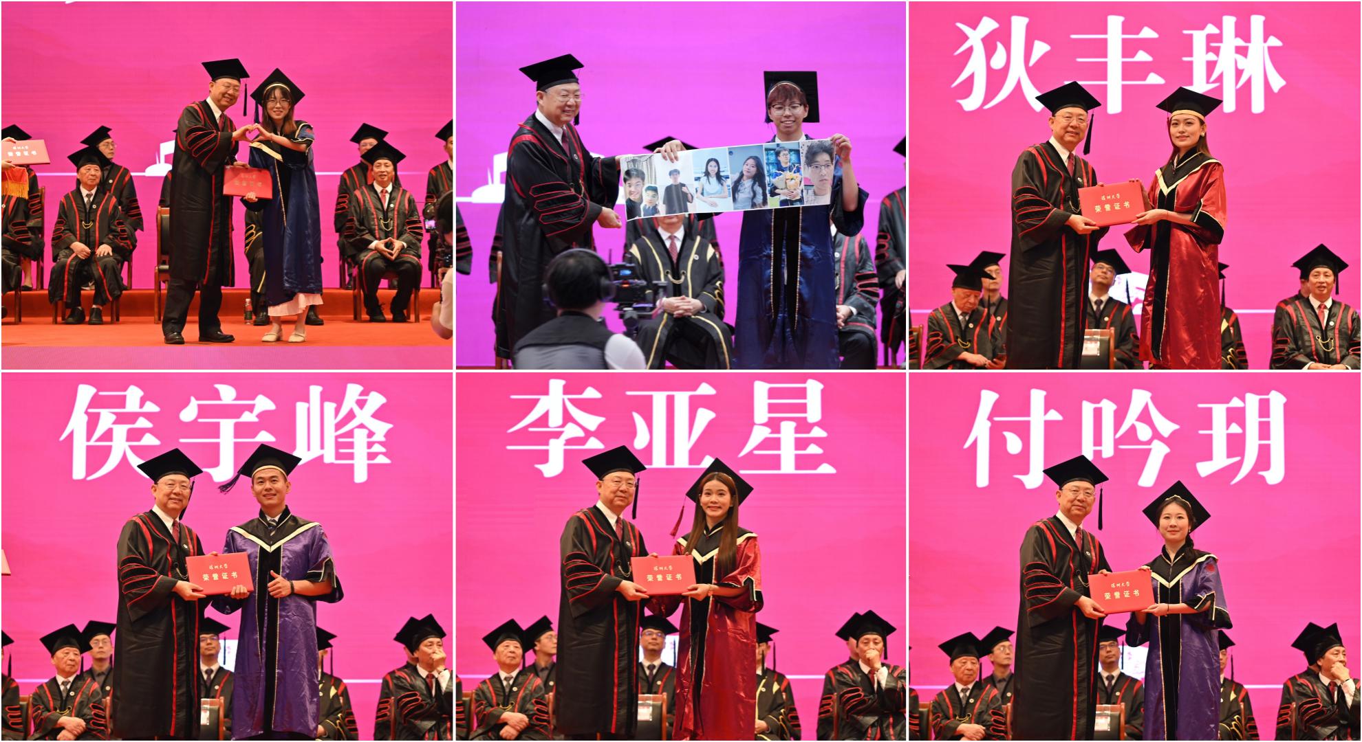 典禮上,李清泉為優(yōu)秀畢業(yè)生代表頒發(fā)表彰證書。毛軍發(fā)主持撥穗儀式并頒授學(xué)士學(xué)位、榮譽(yù)學(xué)士學(xué)位、碩士學(xué)位、博士學(xué)位。汪永成宣讀了深圳大學(xué)關(guān)于表彰優(yōu)秀畢業(yè)生的決定。周輝宣讀了深圳大學(xué)關(guān)于授予學(xué)士學(xué)位、榮譽(yù)學(xué)士學(xué)位、碩士學(xué)位及博士學(xué)位的決定。巢乃鵬介紹深圳大學(xué)2025年本科及研究生畢業(yè)情況。