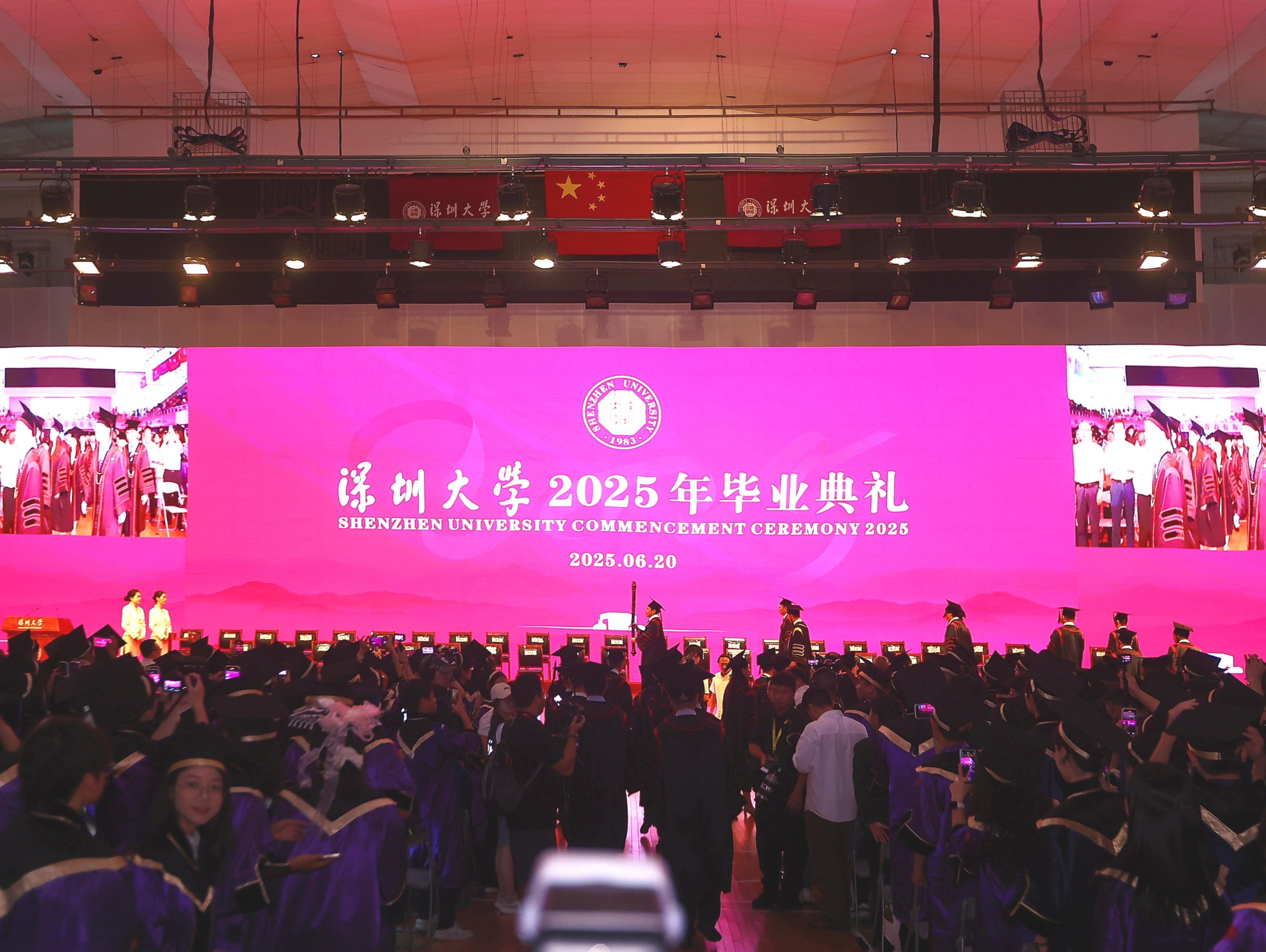 往日不可追,來路且燦爛。6月20日,深圳大學(xué)2025年畢業(yè)典禮在粵海校區(qū)元平體育館舉行。深圳大學(xué)黨委書記、中國工程院院士李清泉,校長、中國科學(xué)院院士毛軍發(fā),兩院院士范滇元、謝和平、陳湘生、彭孝軍,黨委副書記、紀(jì)委書記王月興,副校長李永華、汪永成、周輝、巢乃鵬以及各職能部門、學(xué)院(部)、獨(dú)立研究機(jī)構(gòu)負(fù)責(zé)人出席畢業(yè)典禮。