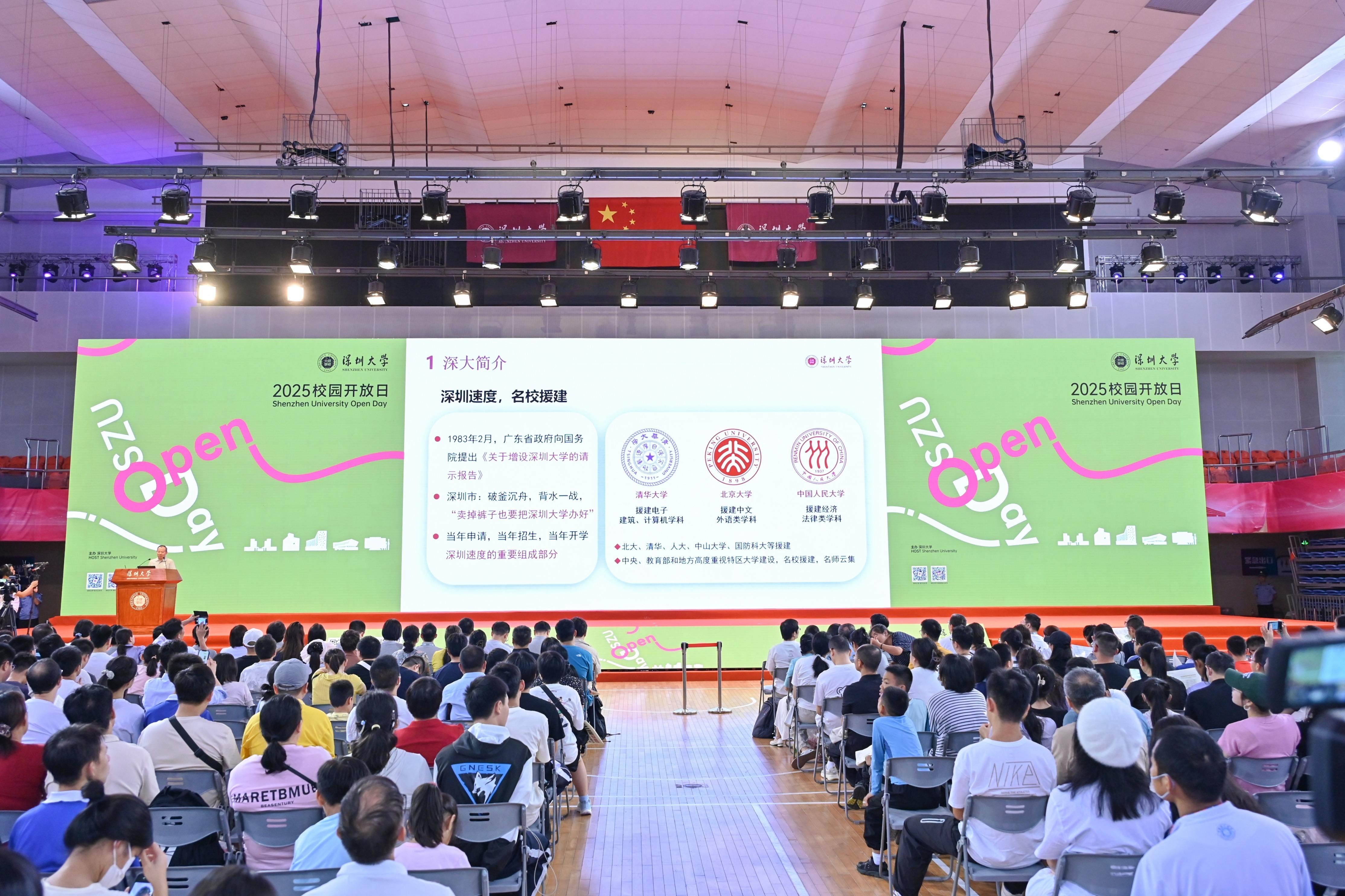 上午九點(diǎn),深圳大學(xué)2025年招生宣講會在粵海校區(qū)元平體育館開啟,在麗湖校區(qū)啟明樓設(shè)分會場直播。