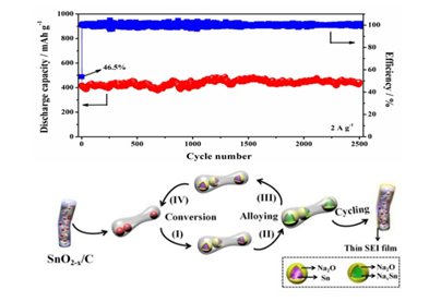 近日,化學(xué)與環(huán)境工程學(xué)院張培新教授課題組在化學(xué)領(lǐng)域頂級(jí)刊物《Angewandte Chemie International Edition》(JCR一區(qū),影響因子11.994)發(fā)表了題為《Robust SnO2-x Nanoparticle-Impregnated Carbon Nanofibers with Outstanding Electrochemical Performance for Advanced Sodium-ion Batteries》(DOI: 10.1002/anie.201802672)的研究論文。該研究通過(guò)調(diào)控靜電紡絲碳纖維中包覆的氧化錫顆粒的缺陷摻雜,極大地提高了材料的倍率性能和循環(huán)穩(wěn)定性。在電流密度為2 A·g-1下,電池循環(huán)2500次容量沒有衰減,是迄今為止有關(guān)鈉離子電池報(bào)道的最好結(jié)果。審稿人對(duì)此工作給予非常重要(前5%)和很重要(前20%)的評(píng)價(jià),而編輯也強(qiáng)調(diào)只有不到10%的稿件能收到如此正面的反饋和評(píng)價(jià)。(Less than 10% of our manuscripts receive such a positive review. We recommend that you tell the publicity/press department of your institute about your publication and the excellent reviews that it has received; a press release could be possible.)。課題組馬定濤和李永亮博士是論文的第一作者,深圳大學(xué)的張培新教授和佐治亞理工學(xué)院的林志群教授為論文的共同通訊作者,深圳大學(xué)為第一完成單位和通訊單位。