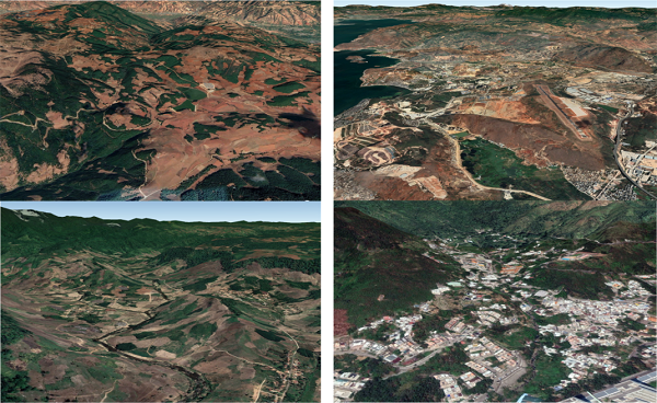 衛星觀測的高地上的人類活動擴張,包括耕地開墾(左) 和人造地表的開發(右),圖像來源于Google Earth影像