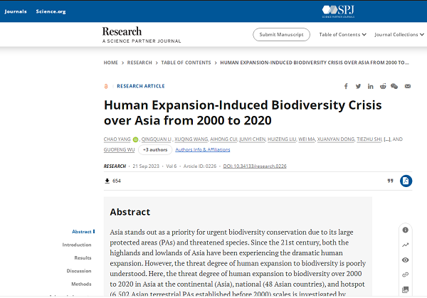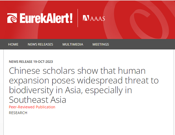 權威科學新聞網報道深圳大學在《Research》上發表的成果:人類活動擴張引發的亞洲生物多樣性危機