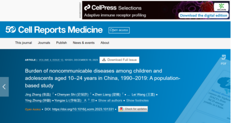 醫學部張晶助理教授在Cell Reports Medicine發表中國兒童及青少年非傳染性疾病負擔研究成果