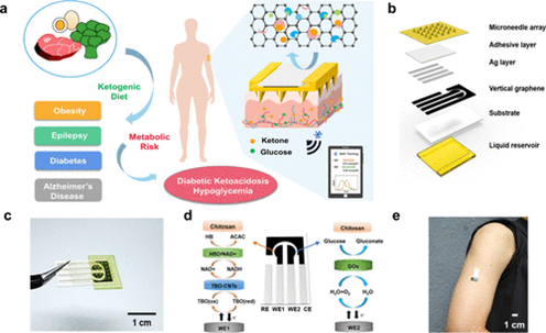 圖10.實時生酮飲食管理的可穿戴微針生物傳感器的示意圖和圖像