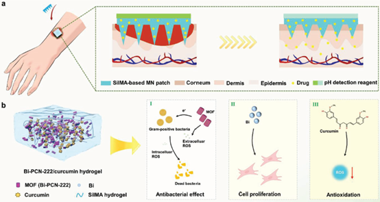 2. 支持傷口pH值視覺監測的自消毒微針傳感貼片
