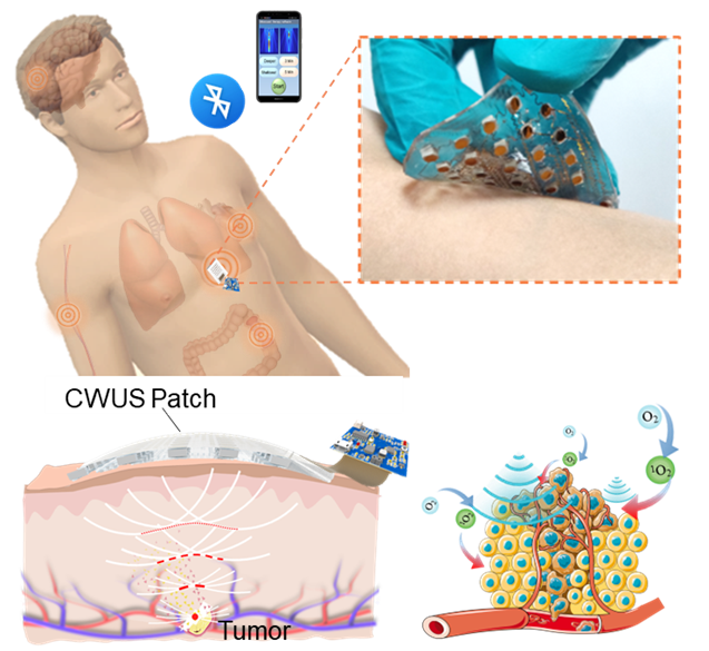 圖7.可連續聲動力治療的全集成適形可穿戴超聲系統及抗腫瘤治療示意圖