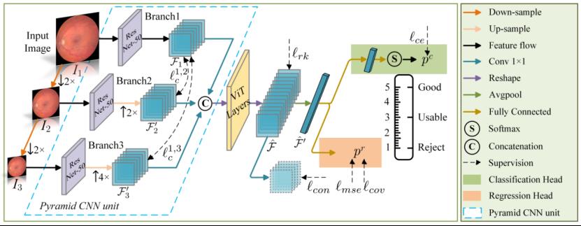 視網膜照相因其無創性、低成本和信息豐富而廣泛應用于視網膜疾病的篩查和診斷。然而,在成像過程中由于內部和外部因素通常會導致視網膜圖像質量的衰退,例如不均勻光照和低對比度等失真。低質量的視網膜圖像無法為臨床的精確診斷提供保障,增加漏診和誤診的風險。因此,為了確保診斷的準確性,在使用圖像之前對其進行質量評估是很有必要的。