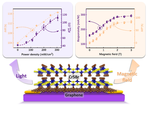 后摩爾時代對數據存儲密度和操作速度持續提升的迫切需求,不斷推動下一代多功能自旋電子和光電器件的發展。傳統的磁場調控方式已難以滿足現代技術發展的需要,利用光來實現快速、非接觸磁性調控的概念應運而生。另一方面,具備磁光響應的光電器件可以成為傳統光電晶體管的有力補充,因而探索光與磁性之間的相互耦合作用成為一個重要的科學問題。但由于缺乏良好的光磁耦合材料,并且在同一器件上同時表征這些物理量存在內稟困難,光磁耦合的研究仍存在巨大挑戰。