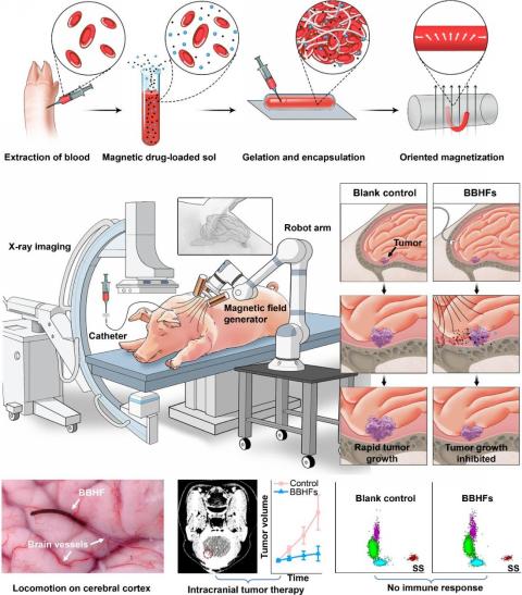 圖1.源自患者自體血液的凝膠纖維機器人用于顱內(nèi)深部操控與遞送
