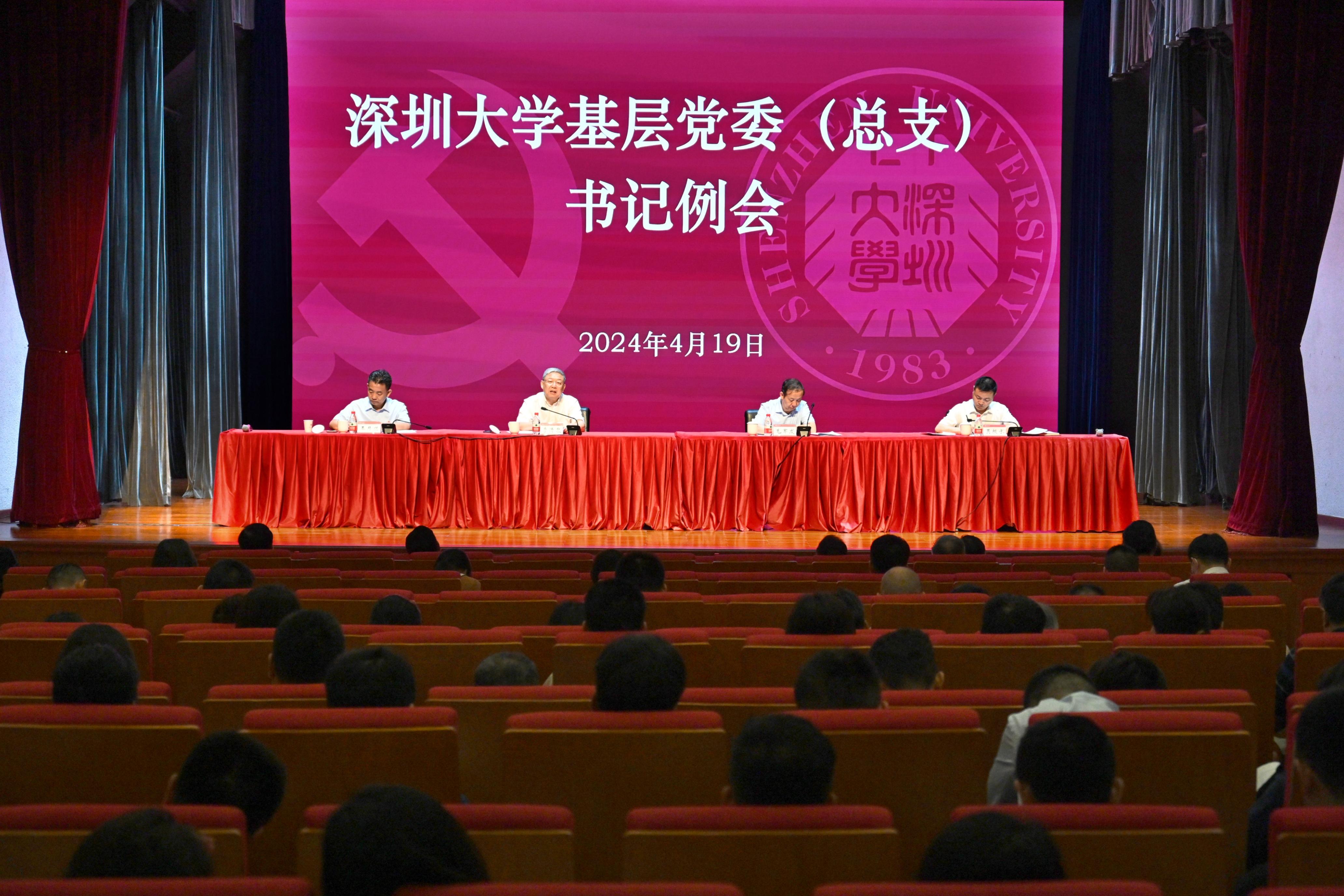 4月19日,深圳大學(xué)在粵海校區(qū)國際會議廳召開4月基層黨委(總支)書記例會。全體在家校領(lǐng)導(dǎo),機(jī)關(guān)職能部門、直屬單位、附屬單位主要負(fù)責(zé)同志,各學(xué)院(部)書記、院長,全國重點(diǎn)實(shí)驗(yàn)室等國家級研究基地、獨(dú)立法人科研機(jī)構(gòu)、相對獨(dú)立科研機(jī)構(gòu)負(fù)責(zé)人,各單位紀(jì)委書記、辦公室主任和黨建組織員參加會議。